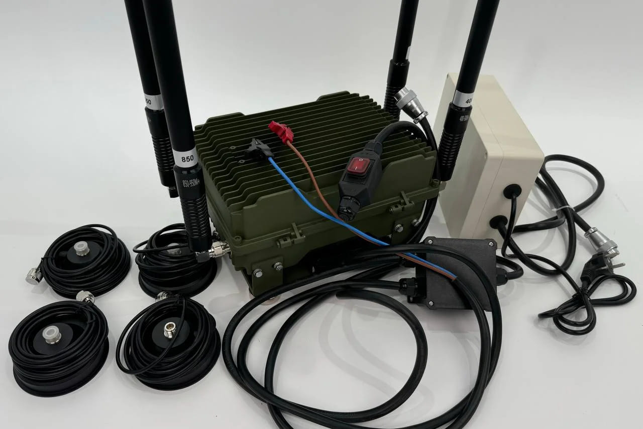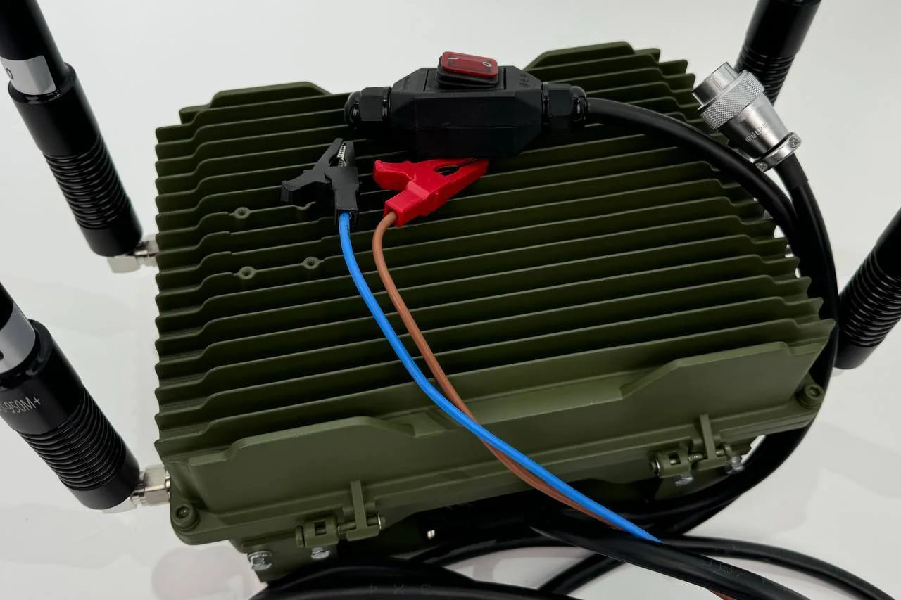 Станция оснащена четырьмя независимыми каналами подавления мощностью по 50 Вт каждый. Такая конфигурация позволяет перекрывать основные частоты, используемые FPV-дронами для управления и передачи данных, обеспечивая устойчивое подавление на дистанции до 350–500 метров.