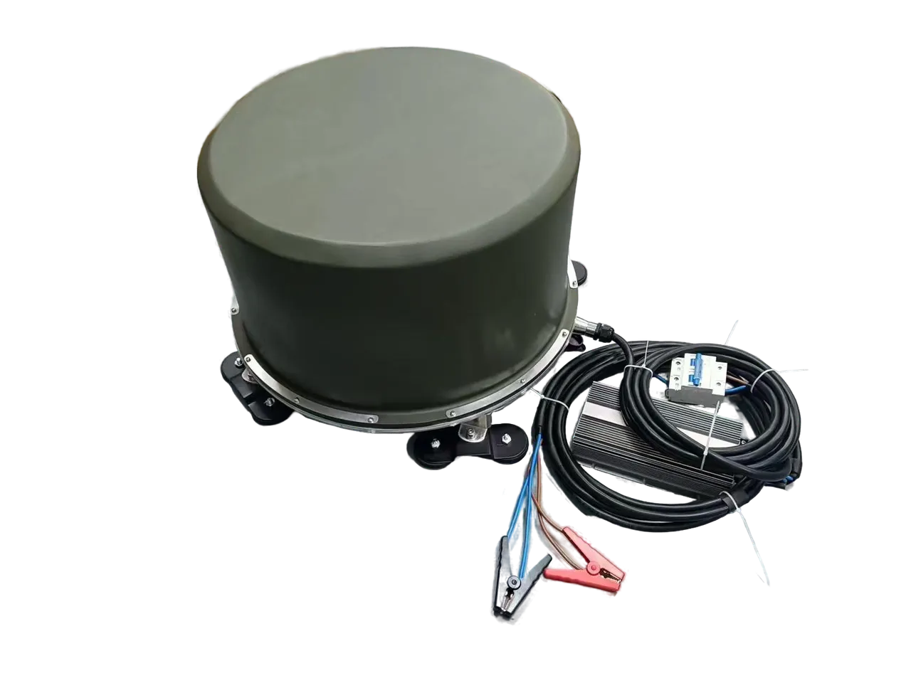 Комплекс питается от бортовой сети 12/24 В через внешний преобразователь напряжения, что обеспечивает совместимость с большинством транспортных средств. В комплекте предусмотрен выносной пульт дистанционного управления для удобного включения и отключения системы.